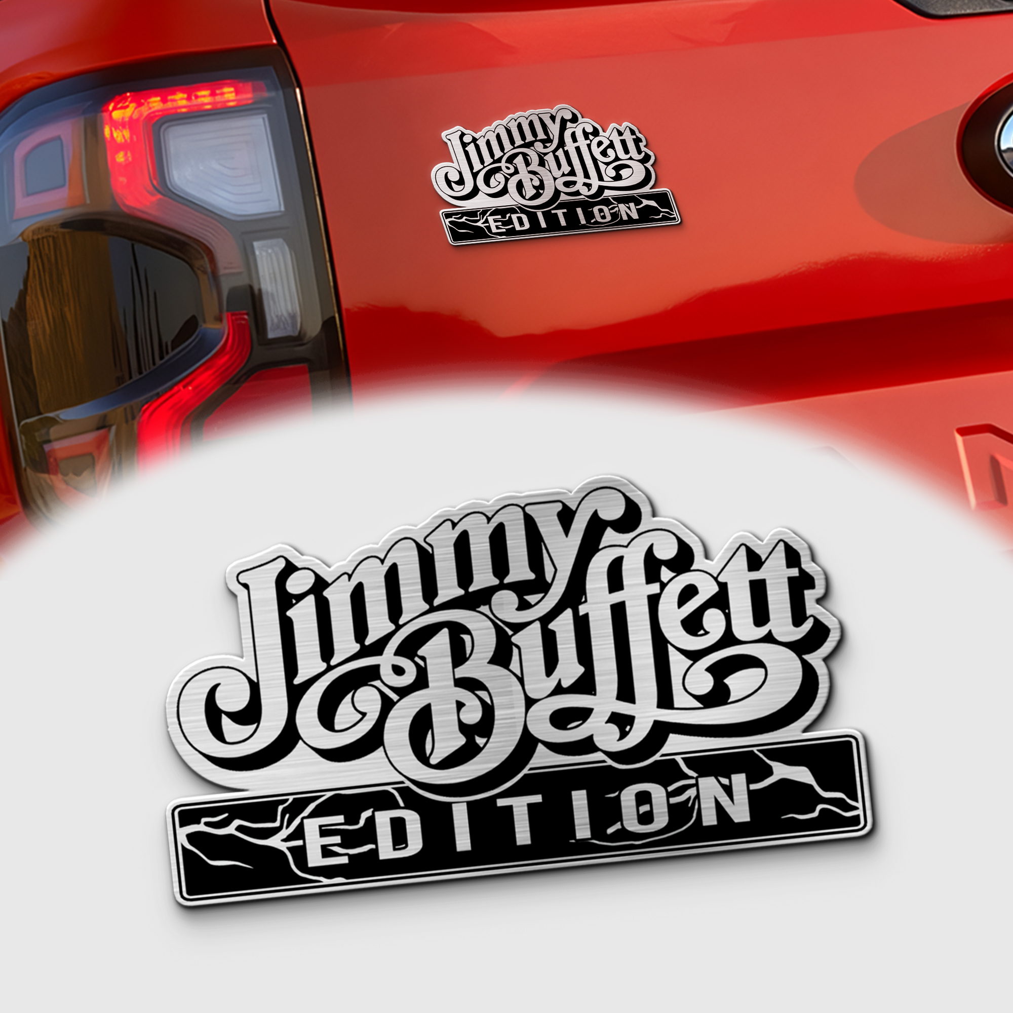 Jimmy Buffett Edition Laser-Engraved Car Name Emblem – Let Your Ride Rock Like You Do! 🎸